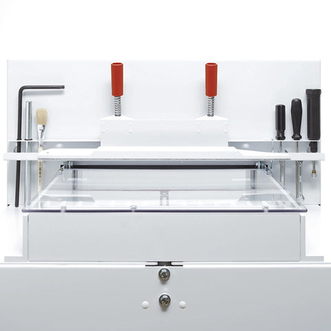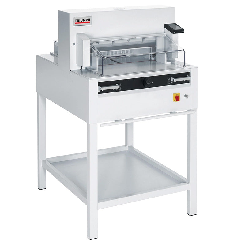 Equipped with an automatic clamp and a powered backgauge, the Triumph 4855 ensures fast, precise positioning and reliable cutting across a variety of paper sizes and stocks. Its intuitive digital control panel allows users to easily program cutting sequences, store repeat jobs, and streamline daily workflows. Pre-programmed standard paper sizes further reduce setup time and improve productivity.