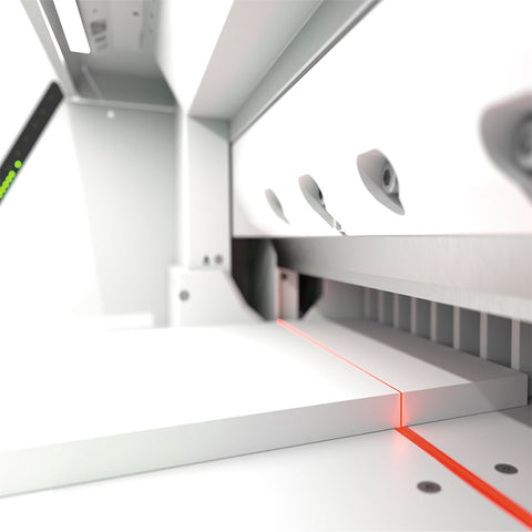 Safety is a priority with EASY-TOUCH, two-hand cut activation and integrated optical signals to ensure secure operation. The mechanical foot clamp includes an ergonomic, patented pre-clamping system and cutting line indicator, providing excellent material control and precise alignment before each cut. With its advanced hydraulic power, modern touchscreen controls, and user-focused design, the MBM Triumph Speedcut 68 is an ideal solution for organizations seeking efficient, accurate, and reliable paper cutting performance.